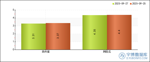 网纹瓜 | 4.35元/斤 | 4.4元/斤 | -0.91% |